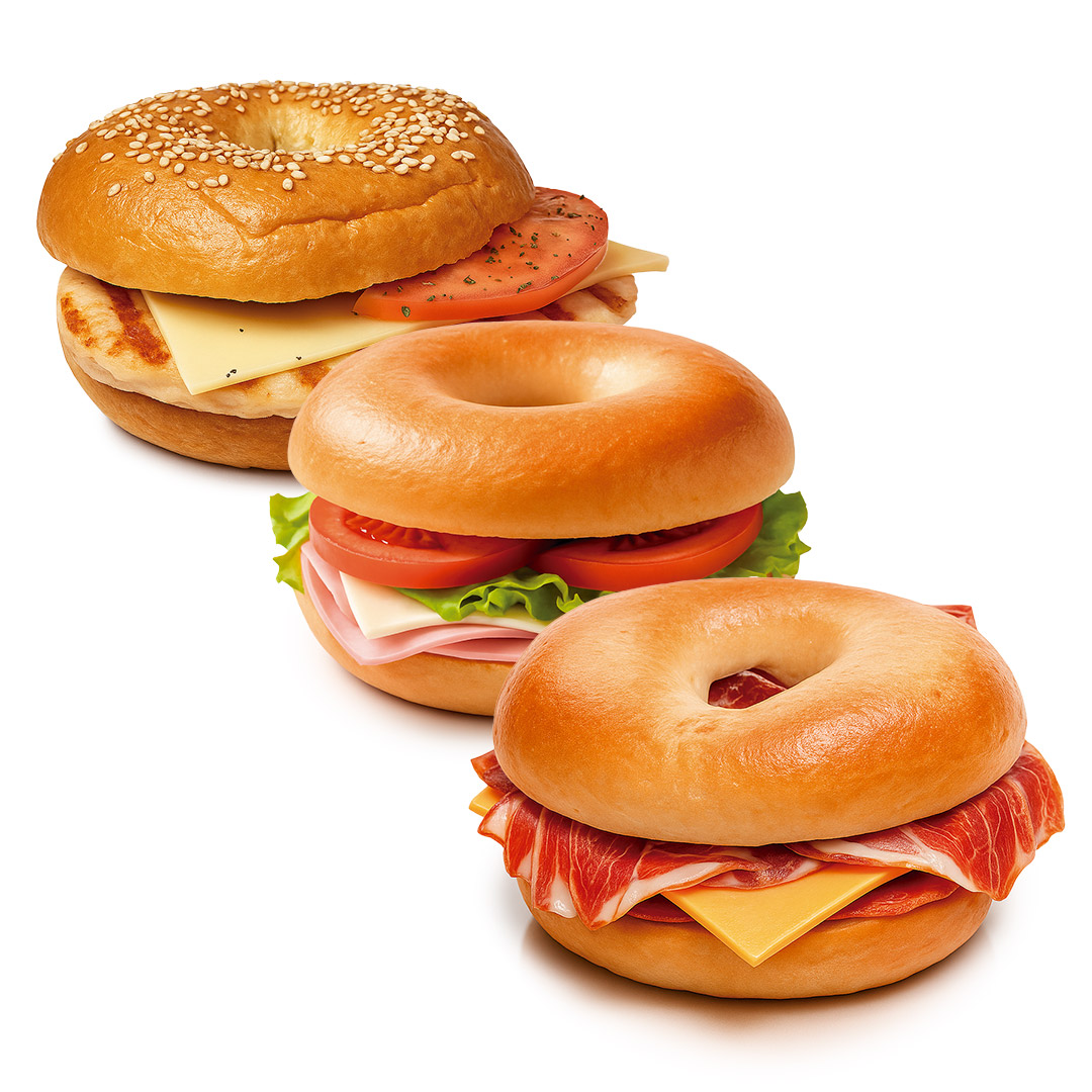 Perfectos para una parada rápida o para saborear sin prisas. Bagels rellenos, tostados y listos para acompañar tu café o como opción de snack entre horas.